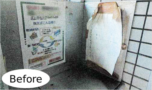 掲示板に残っていたシール跡を清掃