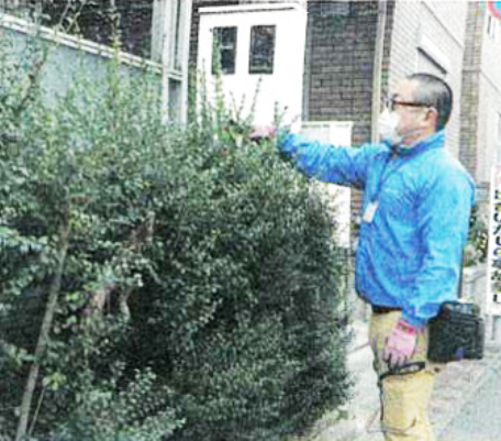 道にはみ出した植栽の手入れも行う