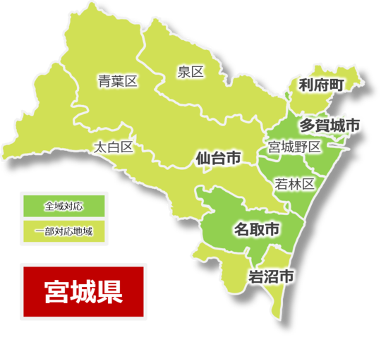 | 全域対応 | 仙台市(若林区・宮城野区)、名取市、多賀城市 |