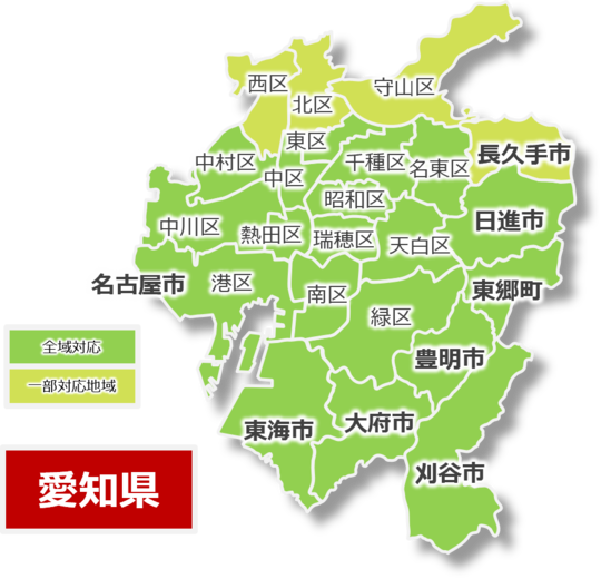 | 全域対応 | 名古屋市 大府市、東海市、豊明市、刈谷市、日進市、東郷町 |