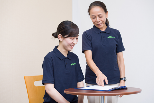 先輩スタッフとの同行研修や動画研修を積み重ね知識と技能をしっかり身につけます。